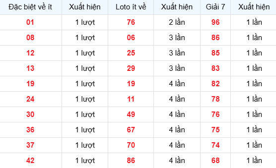 Thống kê đặc biệt XSMB ít về gần đây: 01 08 12 13 19